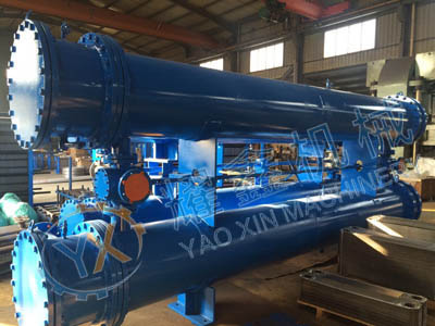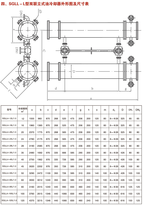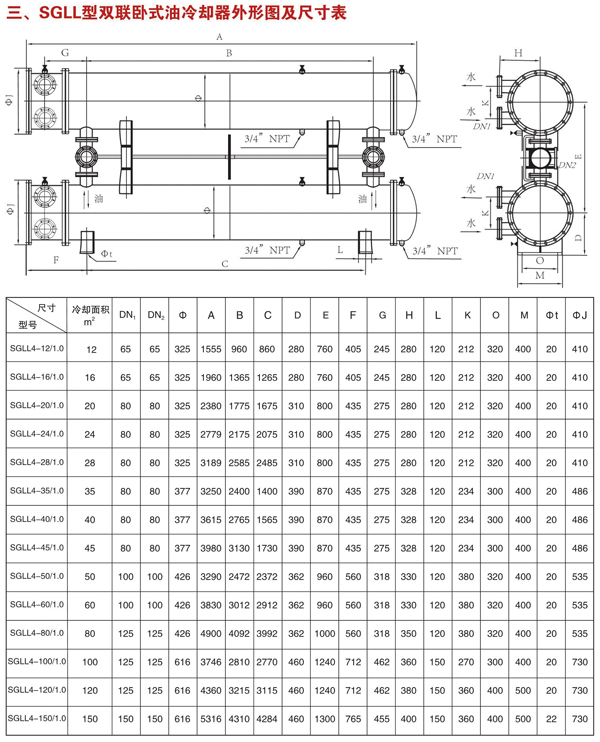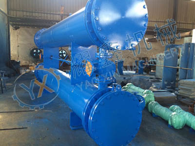 該冷卻器采用雙聯(lián)結(jié)構(gòu),由兩只相同面積的冷油器和三通閥裝置構(gòu)成,一只工作,一只備用,每個冷卻器能承擔(dān)整個系統(tǒng)的冷卻負(fù)荷,管板一頭固定,一頭浮動、可拆卸的管束和水室箱蓋,便于運行過程中清洗、檢查和維修。冷卻器的材質(zhì),根據(jù)使用場所、水系統(tǒng)條件可有多種選擇。